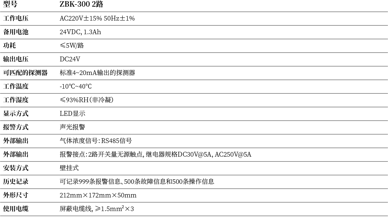 ZBK-300氣體報警控制器與PLC、PC等及我公司4~20mA電流輸出的氣體探測器組成工業(yè)用氣體報警控制系統(tǒng)。氣體報警控制器通過RS485接口與PLC或PC通訊。